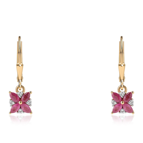 1 kép Arannyal Bevont Ezüst Fülbevaló Mozambiquei Rubinnal és Fehér Topázzal