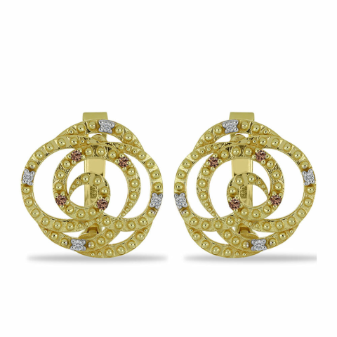 1 kép Arannyal Bevont Ezüst Fülbevaló Pezsgő Gyémánttal és Fehér Gyémánttal, Y58315