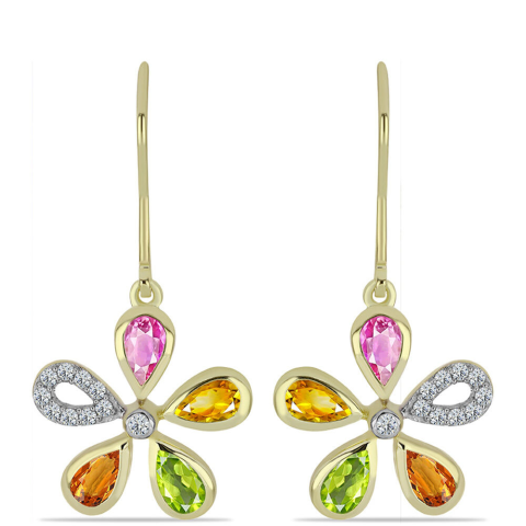 1 kép Arannyal Bevont Ezüst Fülbevaló Rosebery Szivárvány Zafírral és Fehér Topázzal, Y59719