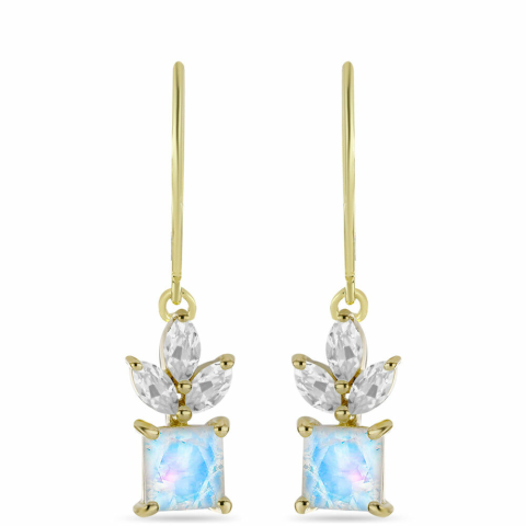 1 kép Arannyal Bevont Ezüst Fülbevaló Szivárvány Holdkővel és Fehér Topázzal, Y58042