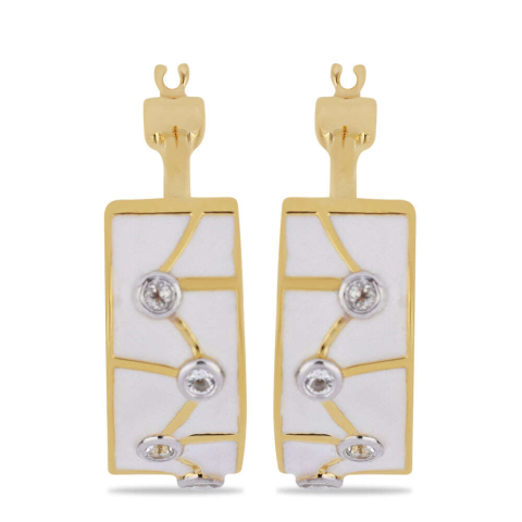 1 kép Arannyal Bevont Ezüst Fülbevaló Tűzzománccal és Fehér Topázzal, Y53298