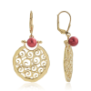 1 kép Arannyal Bevont Ezüst Fülbevaló Vörös Édesvízi Gyönggyel, XELP37