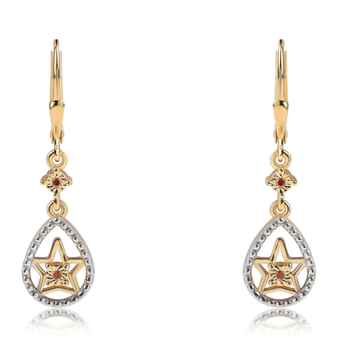 1 kép Arannyal Bevont Ezüst Fülbevaló Vörös Gyémánttal, ROS703