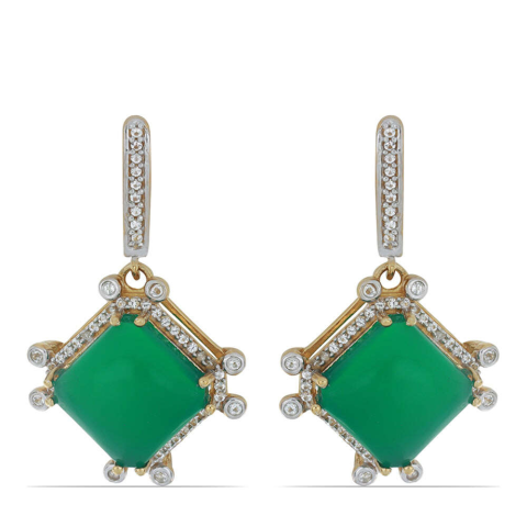 Arannyal Bevont Ezüst Fülbevaló Zöld Acháttal és Fehér Topázzal, Y48550