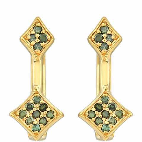 1 kép Arannyal Bevont Ezüst Fülbevaló Zöld Gyémánttal, PCY11282