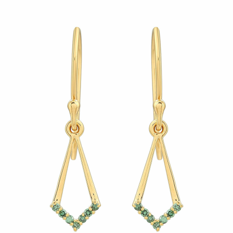 1 kép Arannyal Bevont Ezüst Fülbevaló Zöld Gyémánttal, PCY11298
