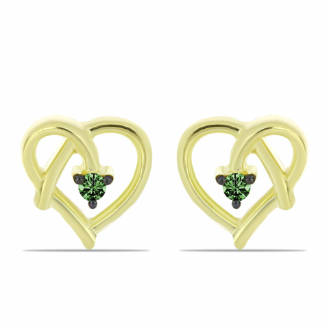 1 kép Arannyal Bevont Ezüst Fülbevaló Zöld Gyémánttal, Y60843