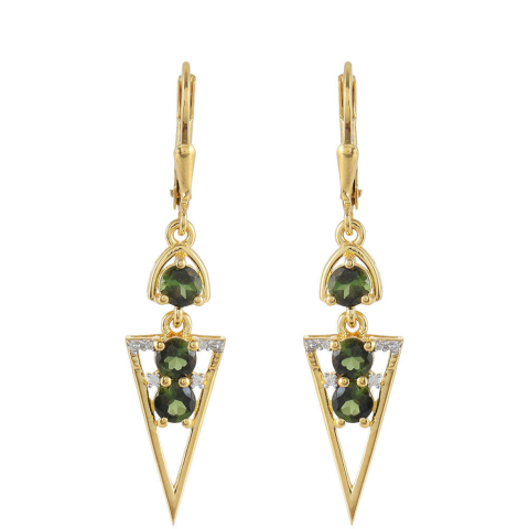 1 kép Arannyal Bevont Ezüst Fülbevaló Zöld Turmalinnal és Természetes Cirkónnal, PCY10870