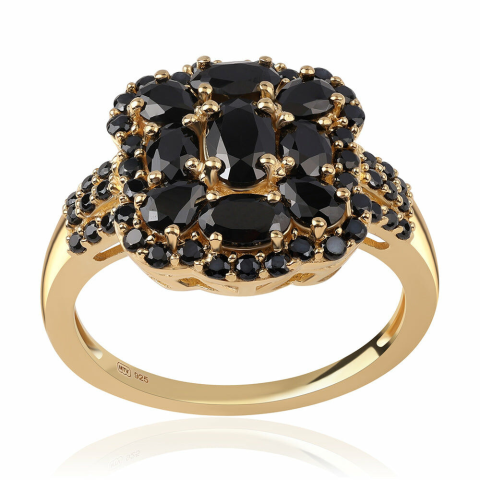 1 kép Arannyal Bevont Ezüst Gyűrű - 3.28 Karátos Fekete Spinellel