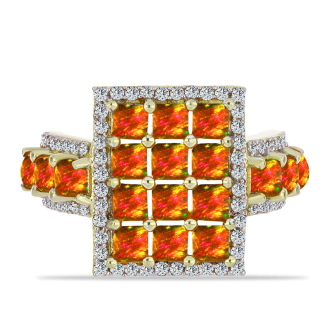 1 kép Arannyal Bevont Ezüst Gyűrű Amerikai Tűzopállal és Fehér Topázzal, Y60238/57