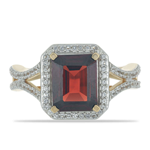 1 kép Arannyal Bevont Ezüst Gyűrű Barton Gránáttal és Fehér Topázzal, Y54309/54