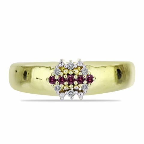 1 kép Arannyal Bevont Ezüst Gyűrű Bíbor Gyémánttal és Fehér Gyémánttal, Y60073/57