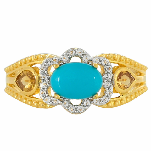Arannyal Bevont Ezüst Gyűrű 1.12 Karátos Csipkerózsika Türkizzel és Citrinnel, súlya kb.: 3.34 gramm KÓD: PCY9926 ✨ Drágaköves és nemesfém ékszerek – Ragyogás és elegancia hosszú távon! ✨ Minden drágaköves ékszerünk hivatalos eredetiségi tanúsítvánn...