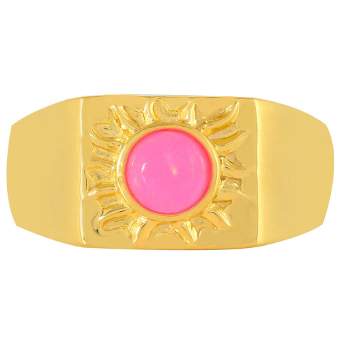 Aranyozott Ezüst Gyűrű Etiópiai Neon Pink Opállal: Ragyogó elegancia ☀️ Ez a lenyűgöző gyűrű aranyozott ezüstből készült, és egy feltűnő 0.35 karátos etiópiai neon pink opállal díszített. A gyűrű súlya kb. 5.82 gramm. A napot idéző dizájnnal tökélet...