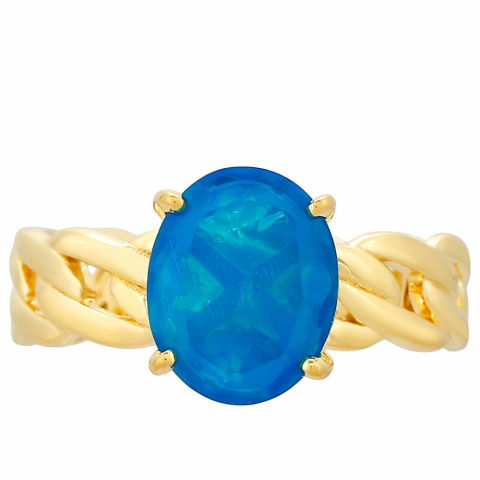 1 kép Arannyal Bevont Ezüst Gyűrű Etiópiai Paraiba Kék Opállal, PCY11343/57