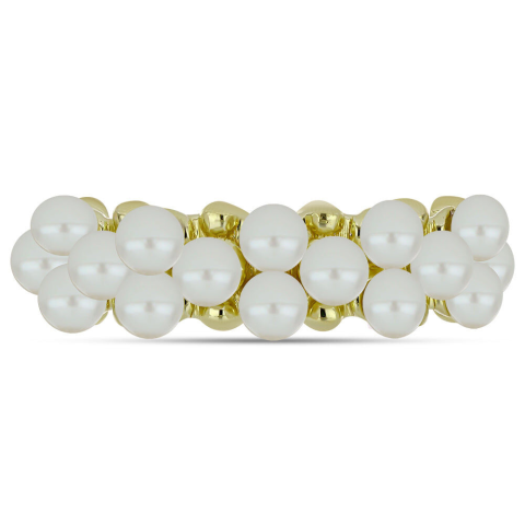 1 kép Arannyal Bevont Ezüst Gyűrű Fehér Édesvízi Kagylógyönggyel, Y61535/54