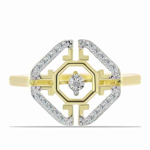 1 kép Arannyal Bevont Ezüst Gyűrű Fehér Gyémánttal és Fehér Topázzal, Y63027/54
