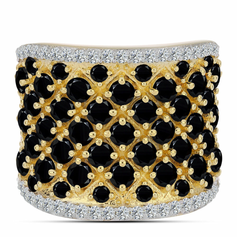 1 kép Arannyal Bevont Ezüst Gyűrű Fekete Onixszal, Y61691/54
