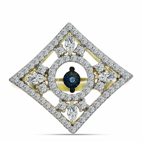 Kék Gyémánt és Fehér Topáz Aranyozott Ezüst Gyűrű ✨ Ez a gyönyörű aranyozott ezüst gyűrű egyedi eleganciát sugároz, melyet a kék táncoló gyémánt és a fehér topáz kombinációja tesz igazán különlegessé. Főbb jellemzők: 💎 1.02 karátos kék táncoló gyém...