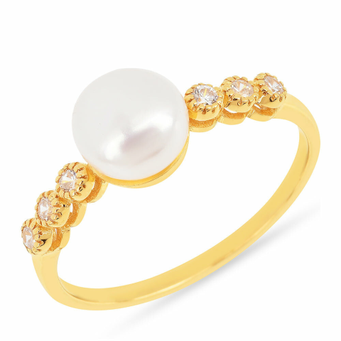 1 kép Arannyal Bevont Ezüst Gyűrű Krém Édesvízi Gyönggyel és Fehér Cirkónnal, TGJ0218/62