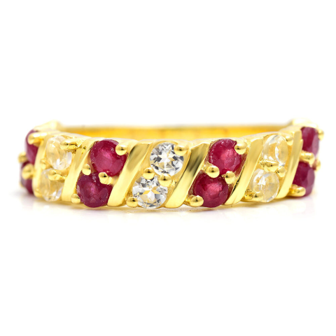 1 kép Arannyal Bevont Ezüst Gyűrű Madagaszkári Rubinnal és Fehér Topázzal, XMP089/54