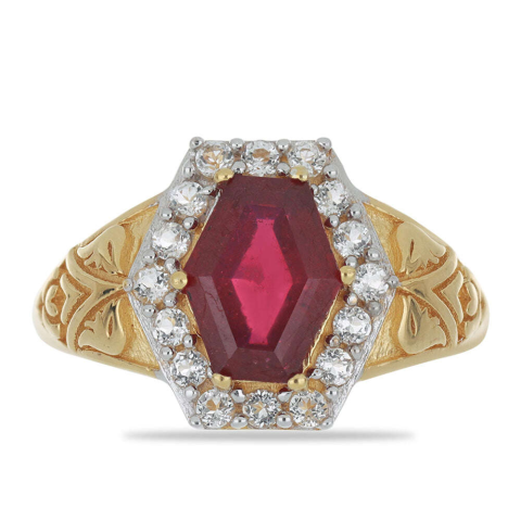 1 kép    Arannyal Bevont Ezüst Gyűrű Madagaszkári Rubinnal és Fehér Topázzal, Y51974/57