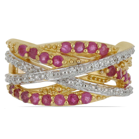 1 kép Arannyal Bevont Ezüst Gyűrű Madagaszkári Rubinnal és Természetes Fehér Cirkónnal, Y44513/57