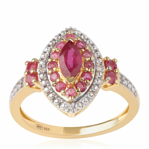 1 kép Arannyal Bevont Ezüst Gyűrű - Mozambiquei Rubin és Fehér Topáz