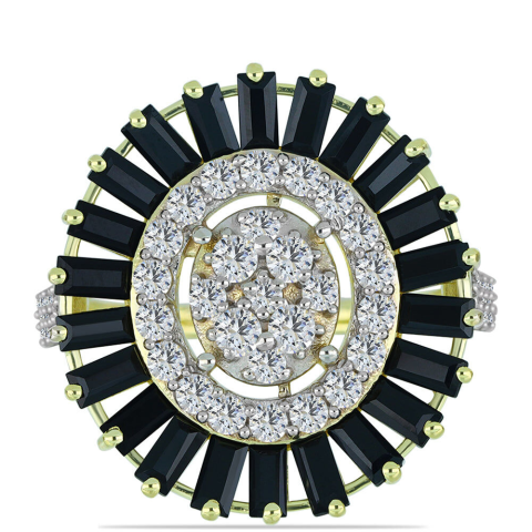 1 kép Arannyal Bevont Ezüst Gyűrű Obszidiánnal és Fehér Topázzal, Y59448/54