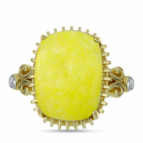Arannyal Bevont Ezüst Gyűrű Sárga Szerpentinnel és Fehér Topázzal, Y58302/59 gyűrű 1 kép
