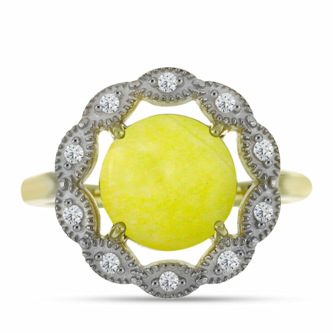 1 kép Arannyal Bevont Ezüst Gyűrű Sárga Szerpentinnel és Fehér Topázzal, Y58303/57
