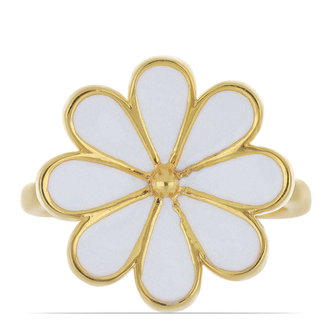 Aranyozott Ezüst Margaréta Gyűrű, Fehér Tűzzománccal 🌼 Ez a gyönyörű, aranyozott ezüst gyűrű egy elbűvölő margaréta virágot ábrázol, fehér tűzzománccal díszítve. Tökéletes választás mindennapi viseletre, vagy különleges alkalmakra is. ✨ Főbb jellemz...
