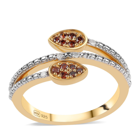1 kép    Arannyal Bevont Ezüst Gyűrű Vörös Gyémánttal és Fehér Gyémánttal, ROS725/57