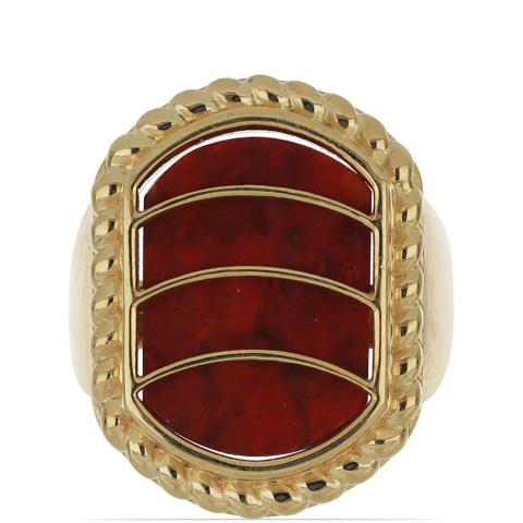 Arannyal bevont ezüst gyűrű vörös korallal - Elegáns és időtálló ékszer 💍 Ez a gyönyörű gyűrű 8 karátos vörös szivacs korall díszítéssel rendelkezik, és aranyozott ezüstből készült. Tökéletes választás mindennapi viseletre, de különleges alkalmakra...
