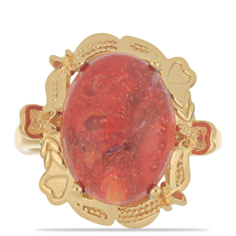 1 kép Arannyal Bevont Ezüst Gyűrű Vörös Szivacs Korallal, Y54609/57