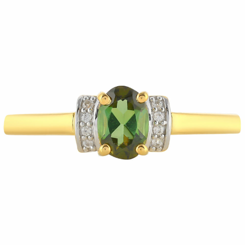 1 kép Arannyal Bevont Ezüst Gyűrű Zöld Turmalinnal és Természetes Cirkónnal, PCY11071/54