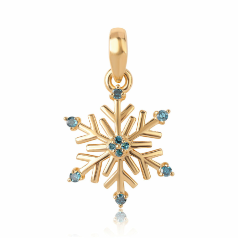 1 kép Arannyal Bevont Ezüst Hópehely Medál - 0.1 Karátos Kék Gyémánt