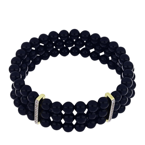 1 kép Arannyal Bevont Ezüst Karkötő Suwari Fekete Onixszal és Fehér Topázzal, Y60336