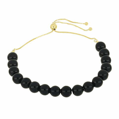 1 kép Arannyal Bevont Ezüst Karkötő Suwari Fekete Onixszal, Y58603