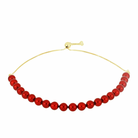 1 kép Arannyal Bevont Ezüst Karkötő Vörös Édesvízi Gyönggyel, Y58359