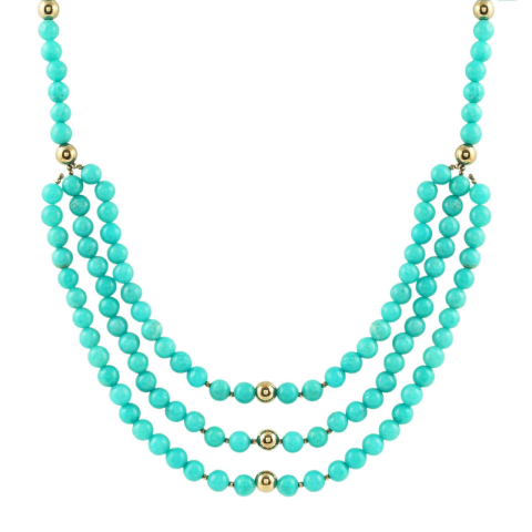 Arannyal bevont ezüst amazonit nyaklánc: Elegáns és időtlen darab ✨ Ez a gyönyörű nyaklánc 464 karátos amazonittal díszített, aranyozott ezüstből készült. Tökéletes választás mindennapi viseletre, de különleges alkalmakra is. A három sorban elrendeze...