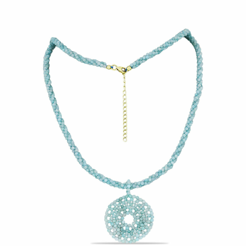 Aranyozott Ezüst Amazonit Nyaklánc - Tengerkék Medállal ✨ Ez a gyönyörű nyaklánc 61,43 karátos tengerkék amazonittal díszített, arannyal bevont ezüstből készült. A kb. 13,29 gramm súlyú ékszer egyedi medállal rendelkezik, amely elegáns és modern meg...