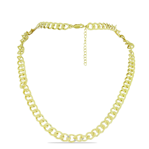 1 kép Arannyal Bevont Ezüst Nyaklánc Fehér Gyémánttal, Y59165
