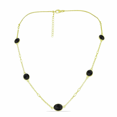 1 kép Arannyal Bevont Ezüst Nyaklánc Fekete Spinellel, Y59245