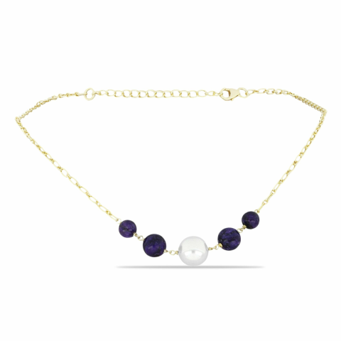 1 kép Arannyal Bevont Ezüst Nyaklánc Karoittal és Fehér Édesvízi Tenyésztett Gyönggyel, Y57828