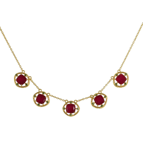 1 kép Arannyal Bevont Ezüst Nyaklánc Rózsaszínű Kvarccal és Páfrányzöld Topázzal, PCY9962