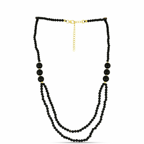 1 kép Arannyal Bevont Ezüst Nyaklánc Suwari Fekete Onixszal, Y58555