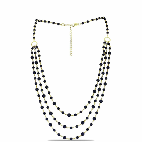 1 kép Arannyal Bevont Ezüst Nyaklánc Suwari Fekete Onixszal, Y60335