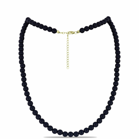 1 kép Arannyal Bevont Ezüst Nyaklánc Suwari Fekete Onixszal, Y60358