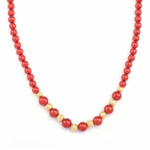 1 kép Arannyal Bevont Ezüst Nyaklánc Vörös Édesvízi Gyönggyel, XELP10
